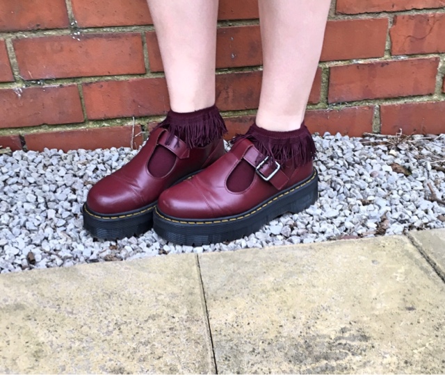 As you can probably tell from most of my posts I'm a big fan of backpacks and use them pretty much every day. I can never resist buying more, especially if they are on sale! This tan tassel detail backpack was no exception and for £5 on sale in Primark how could I refuse?! I hadn't had chance to use it yet as I was finding it hard to match things with it as I don't own any tan shoes and I do like to match the tan to something in an outfit. I compromised and wore a beige/tan fedora which is a simailr colour and went for a cowgirl vibe with this look. I wore my A line denim button up skirt with a chiffon embroidered off the shoulder top. I love the cut out and tassel detail on this top and it goes perfectly with the style of the backpack. I went for an extra bit of fringe/tassel with these burgundy fringe socks and my Bethans. I finished off the look with a burgundy/black choker to tie in with the colour scheme.